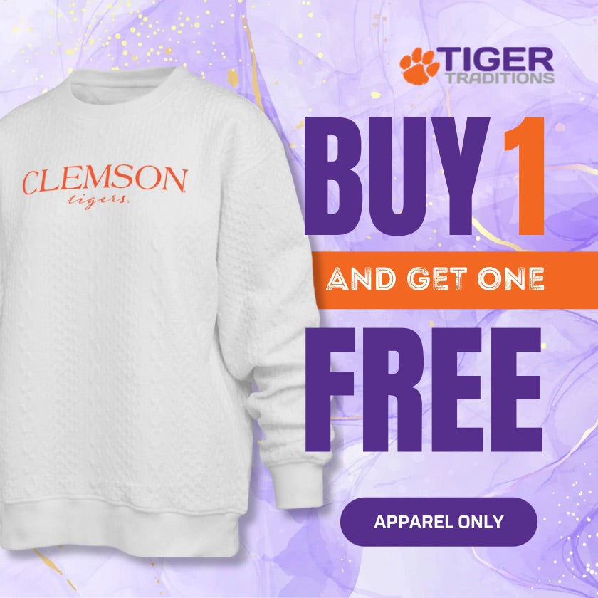 CLEMSON APPAREL BUY ONE GET ONE FREE!!